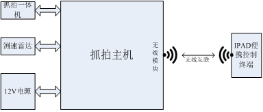 測速抓拍系統主要由高清抓拍一體機、平板測速雷達、鋰電池、無線模塊、便攜控制終端等組成,可以滿足正常的測速抓拍需求。雷達工作時將檢測到的車輛速度傳送給抓拍相機,相機接到雷達發給的信號觸發抓拍,將抓拍的照片送到處理單元存儲并通過顯示單元實時顯示。